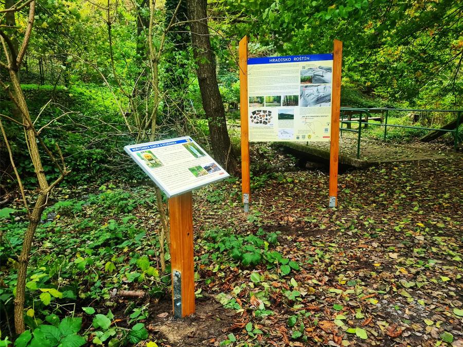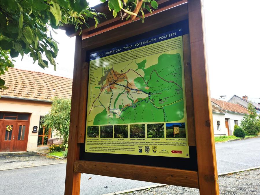 Z centra obce Roštín vede modře značená místní turistická trasa s názvem Roštínským polesím. Její délka činí 5 km a prochází zpevněnými i nezpevněnými polními a lesními cestami v jihovýchodní části obce. Stezka je vhodná pro rodiny s dětmi, které jistě potěší zejména zastavení u Roštínské kaple se studánkou a společný úsek trasy s Naučnou stezkou k lípě u Roštína, kde se nachází několik edukačních prvků pro nejmenší. Starší návštěvníky stezky mohou zaujmout například pozůstatky bývalého letního kina, hradisko, lomy nebo další studánky v okolí. Trasu můžete zdolat i v letních měsících, protože přibližně její polovina vede příjemným stinným prostředím, a navíc je možné si doplnit pitný režim u studánek v Brdském žlebu a u Roštínské kaple. Pokud si budete chtít výlet prodloužit, můžete se napojit na zeleně značenou turistickou trasu, která vás zavede do kopce až na nejvyšší vrchol Chřibů – Brdo s rozhlednou ve výšce 587 m n. m. Od Roštínské kaple je rozhledna vzdálena sice jen 2,5 km, ale trasa zahrnuje poměrně výrazné převýšení okolo 270 m.